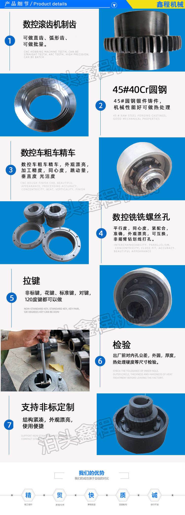 齿式联轴器的特点是外形尺寸小,承载能力高,能在高转速下优良地工作,这种联轴器主要用于重型机械及长轴的联接,但不宜用于立轴的链接。