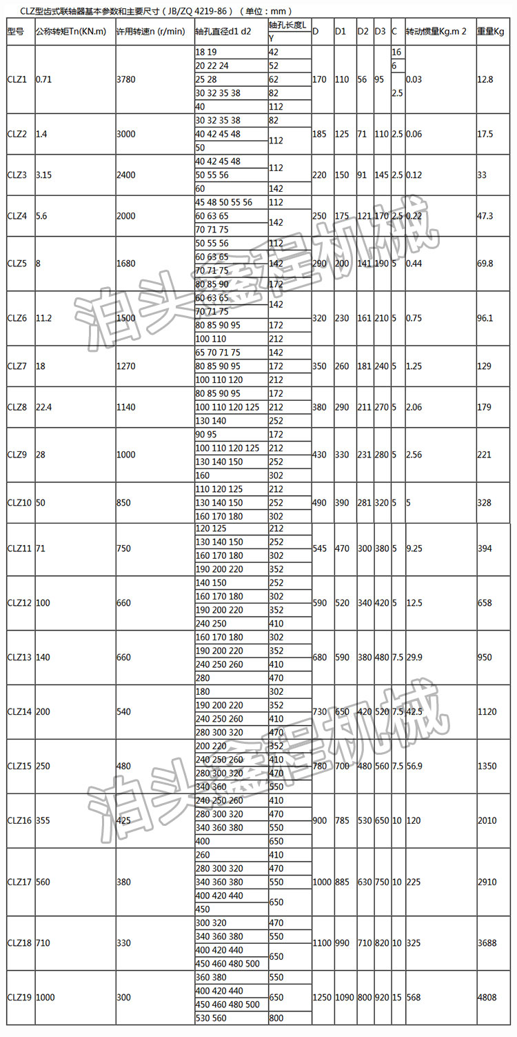 按浮动零件的结构型式,可将鼓形齿联轴器分为外齿浮动式和内齿浮动式等两种。此外,为了在不移动被联机械的情况下装拆鼓形齿联轴器,可将上述两种结构类型演化设计成外齿隔套式和内齿藻套式等。3.制造、安装精度及动平衡 高速机组转子的稳定性极为重要,它要求鼓形齿联轴器具有较高的精度,并进行准确的动平衡。一般要求外齿精度达到6级,内齿精度达到7级。零件的径向跳动和轴向跳动都要限制在很小的范围内,以确认将潜在的不平衡程度降到较低限度.主要零件需进行平衡,对轴向长度较短的零件,允许仅作静平衡。轴向长度较长的零件,应作动平衡,鼓形齿联轴器组装后要作整体动平衡。