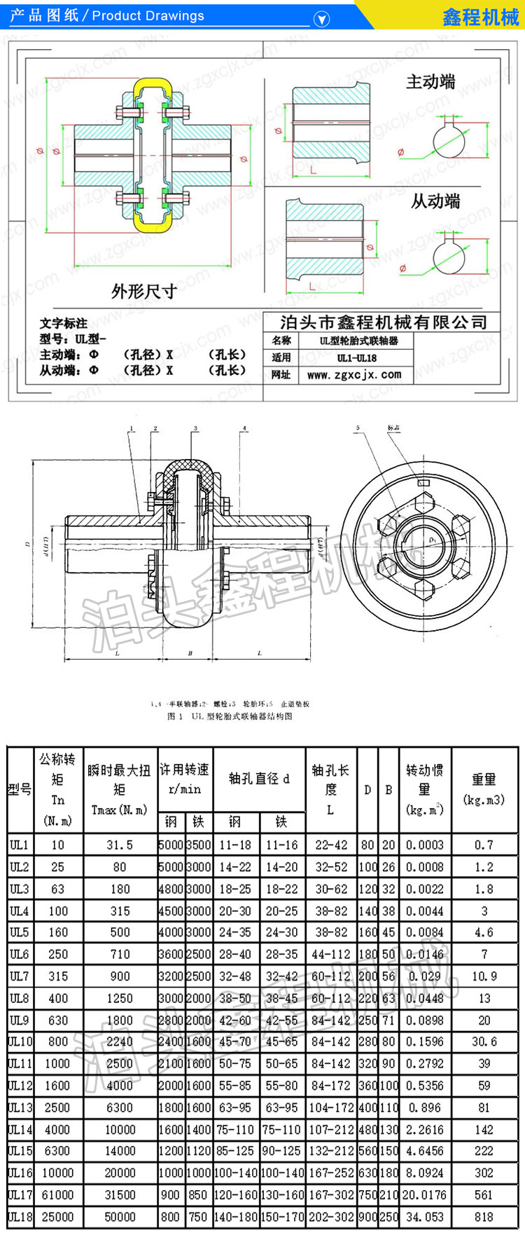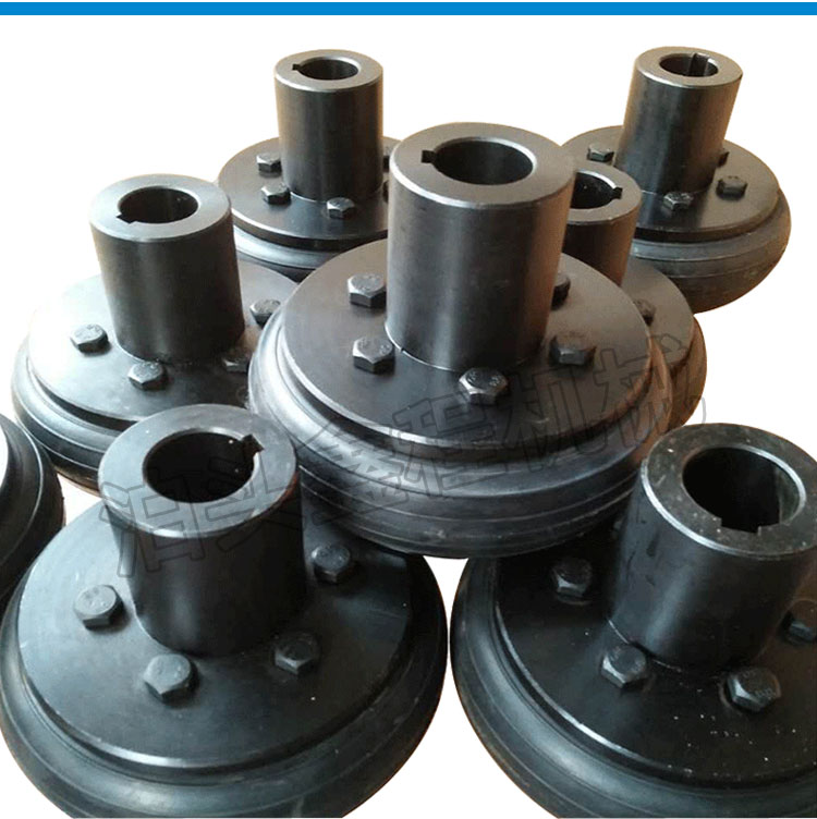 我厂专注服务生产UL,LB,LA,F型,马丁轮胎联轴器,数控车床加工半联轴器,优良轮胎体,拉床制键,严格按国标尺寸加工,质量优良。此联轴器结构简单,装拆方便,扭转,缓冲和补偿两轴相对位移的性能较好。通常适用于扭矩不大的传动系统。根据联轴器的尺寸大小,两轴许用的相对径向位移。由于橡胶环的轴向刚度较大,因此补偿两轴相对轴向位移的能力较差,为此,UL型轮胎联轴器在安装时要求准确调整两轴的轴向位置。具有良好的减震缓冲和优越的轴间偏移补偿性能,工作温度-20~80摄氏度,转递转矩10~20000N.M,适于潮湿、多 尘、有冲击、振动、正反转多变和起动频繁的工作条件,并全拆装方便,因为弹性元件是一整体的轮胎体,拆装维修方便、不需润滑。轮胎联轴器在结构上有些改进,在装拆联轴器的橡胶组合件时,不再需要沿轴向移动两轴,只要旋出螺钉拆下外部具有凸出部分的保护环,就可取出橡胶组合件。两个保护环的端面具有互相嵌合的凸出部,由于一个保护环的凸出部与另一保护环的凹槽沿轴向存在确定的间隙,所以正常工作时,因两半联轴器的相对扭转角小于间隙角,凹凸部的侧面相互不接触。当扭矩超过某一规定的优良值时,扭转角增加等于间隙角,凹凸部侧面接触,从而避免橡胶环变形过大而损坏,起着安然保护作用。