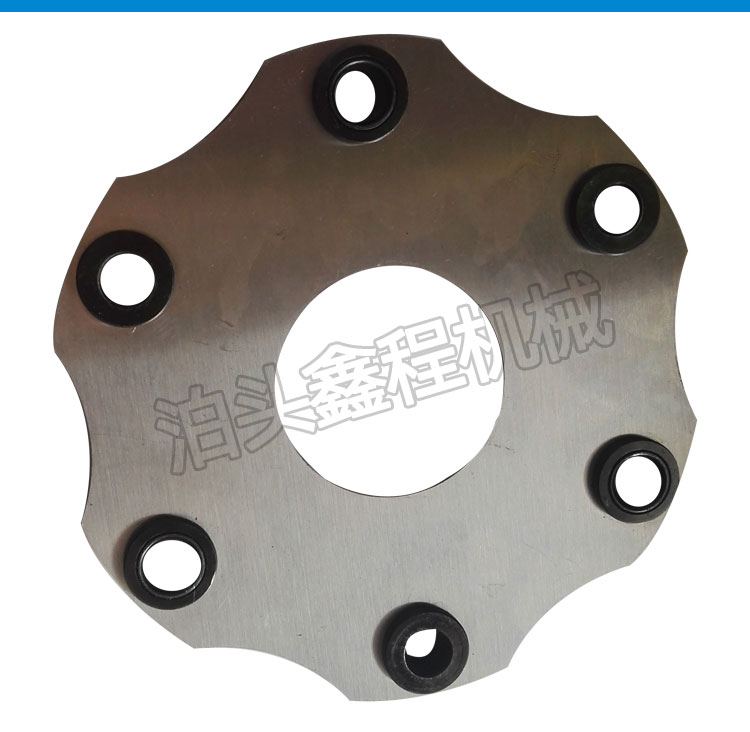 4、膜片联轴器轮辐形的特征:每一膜片联轴器由若干片组成,其外缘与内缘上的螺孔分别与主从动半膜片联轴器连接,工作时发生扭转,膜片上的成型孔是为了增加弹性,由于弹性需要内外径的差值不宜过小,一般以传递中小功率为宜。