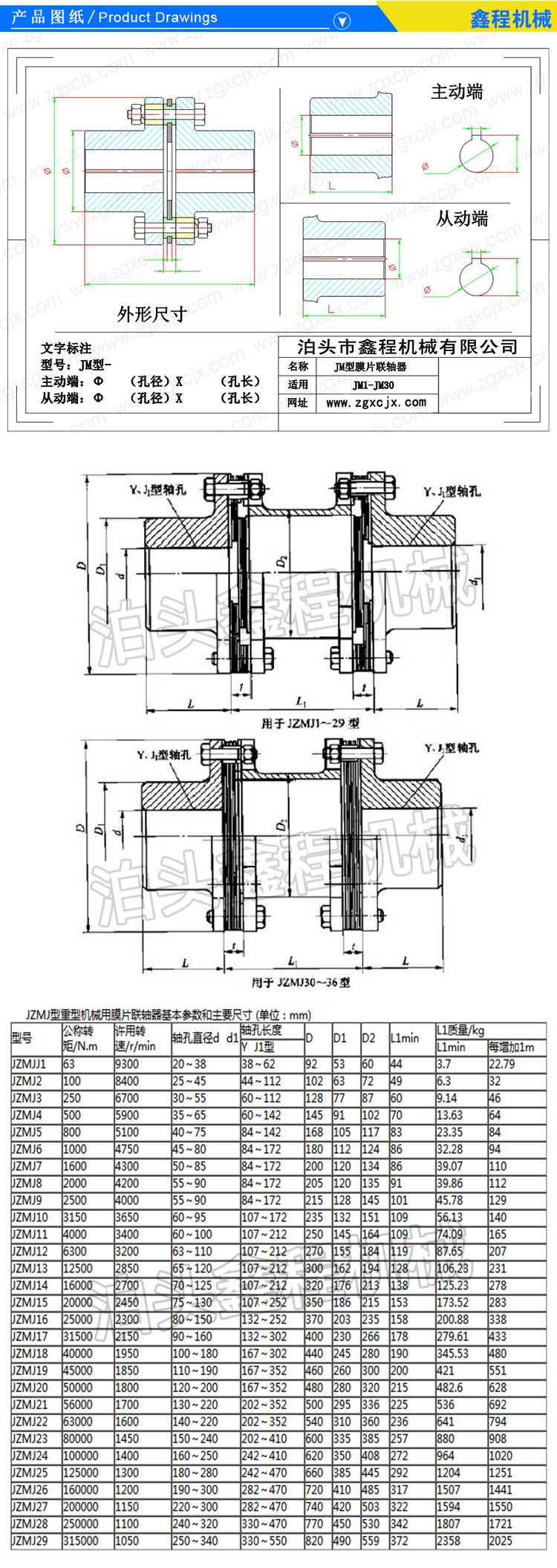 4、根据轴径选择型号:初步选定的轴承联轴器联接尺寸,即轴孔直径d和轴孔长度L,应符合主、从动端轴径的要求,否则还要根据轴径d安置联轴器的规格。主、从动端轴径不相同是正常现象,当转矩、转速相同,主、从动端轴径不相同时,应按大轴径选择联轴器型号。新设计的传动系统中,应选择符合GBT3852中规定的七种轴孔型式,举荐运用J1型轴孔型式,以提高通用性和互换性,轴孔长度按轴承