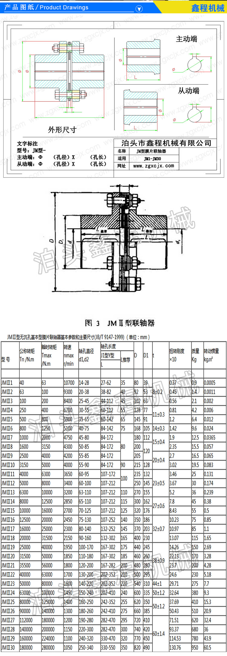 JMⅡ型无沉孔基本型膜片联轴器特性: