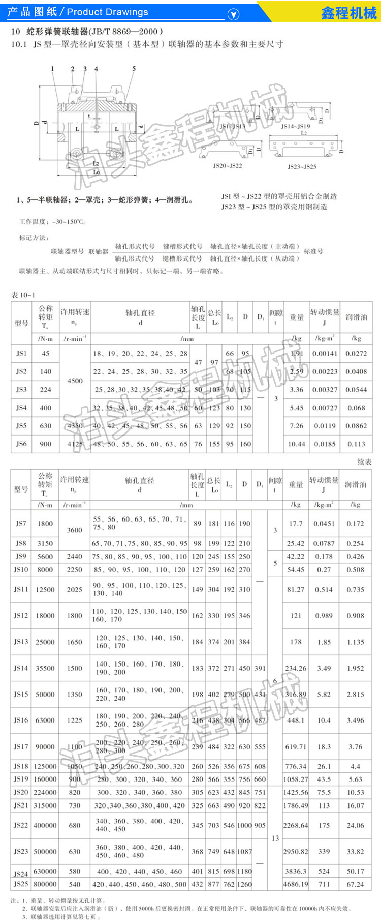 。蛇形弹簧联轴器虽具有如此多的特点和优点,在使用中应注意以下几个方面。1安装细致找正,控制合理偏差蛇形弹簧联轴器虽允许较大的安装偏差,但安装时亦应在规定值内。(1)两瓣联轴器间的间隙与角向偏差的找正。安装时,每隔90°测量两瓣联轴器间的间隙值,其较大值与较小值之差不超过0.38mm。(2)径向偏差的找正。用直尺置于两瓣联轴器上,每隔90°测量1次,用塞尺检查,其径向偏差不超过0.38mm。2选用合适的润滑脂注油点温度≥150℃,能抵抗离心力作用,具有分离稳定性、无杂质、不腐蚀碳钢和丁 腈橡胶的锂基润滑脂较好。3填充足量润滑脂充分的润滑对联轴器工作好重要,建议每年 检查1次。用干油枪注入润滑脂,直到在孔中有过量润滑脂溢出为止。4控制好联轴器的工作环境温度,一般在-18~80℃。