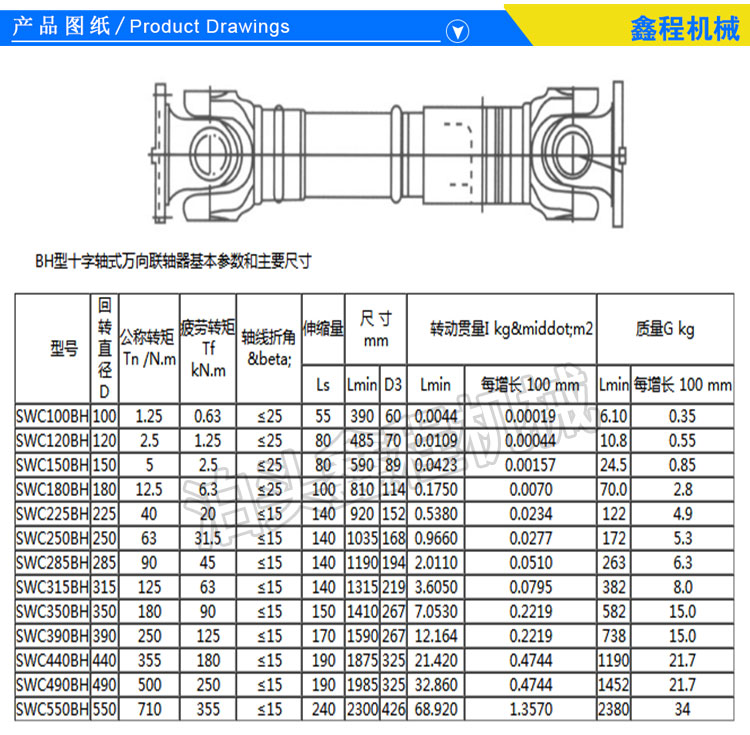 1.具有较大的角度补偿能力,轴线折角,轴线折角可达15度~25度,SWP型可达10度左右
