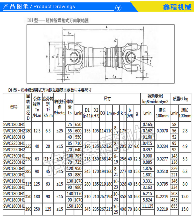 1.SWC-DH型十字轴式万向联轴器的主要特点为: