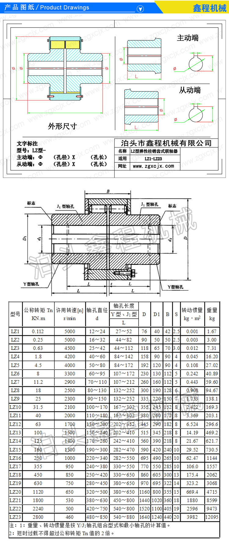 ●联轴器的轴孔和键槽型式及尺寸,标记方法符合GB/T3852-1997《联轴器轴孔和联结型式及尺寸》的规定