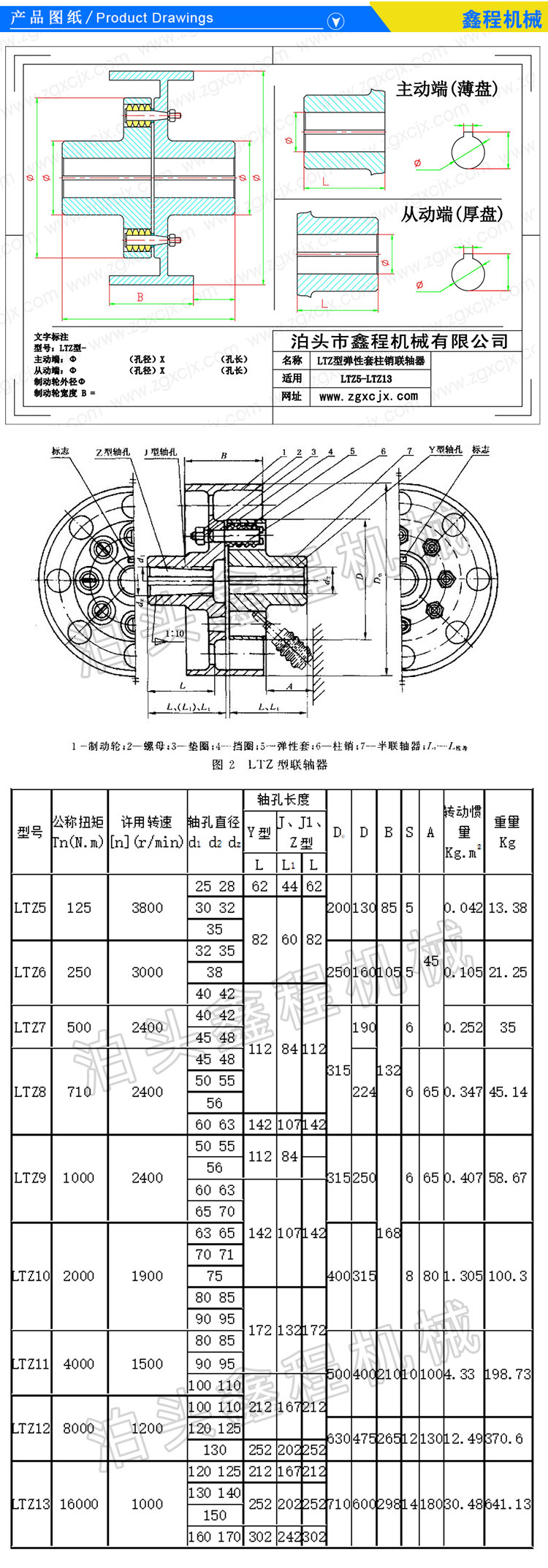 LTZ(原TLL型带制动轮弹性套柱销联轴器全部采用数控车床加工半联轴器,圆钢或铸钢锻钢材质,严格按国标尺寸做,内孔公差小,内孔和表面光滑,强度好弹性套,标准靠背销,数控铣制孔,拉床制键,精度好,速度适宜,可互换。