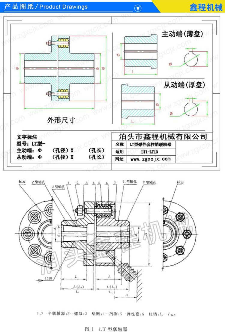带保护凸缘LT型联轴器具有补偿两轴相对偏移和一般减振、缓冲、 电绝缘性能,不需润滑, 换弹性套不需要移动半联轴器和主机。